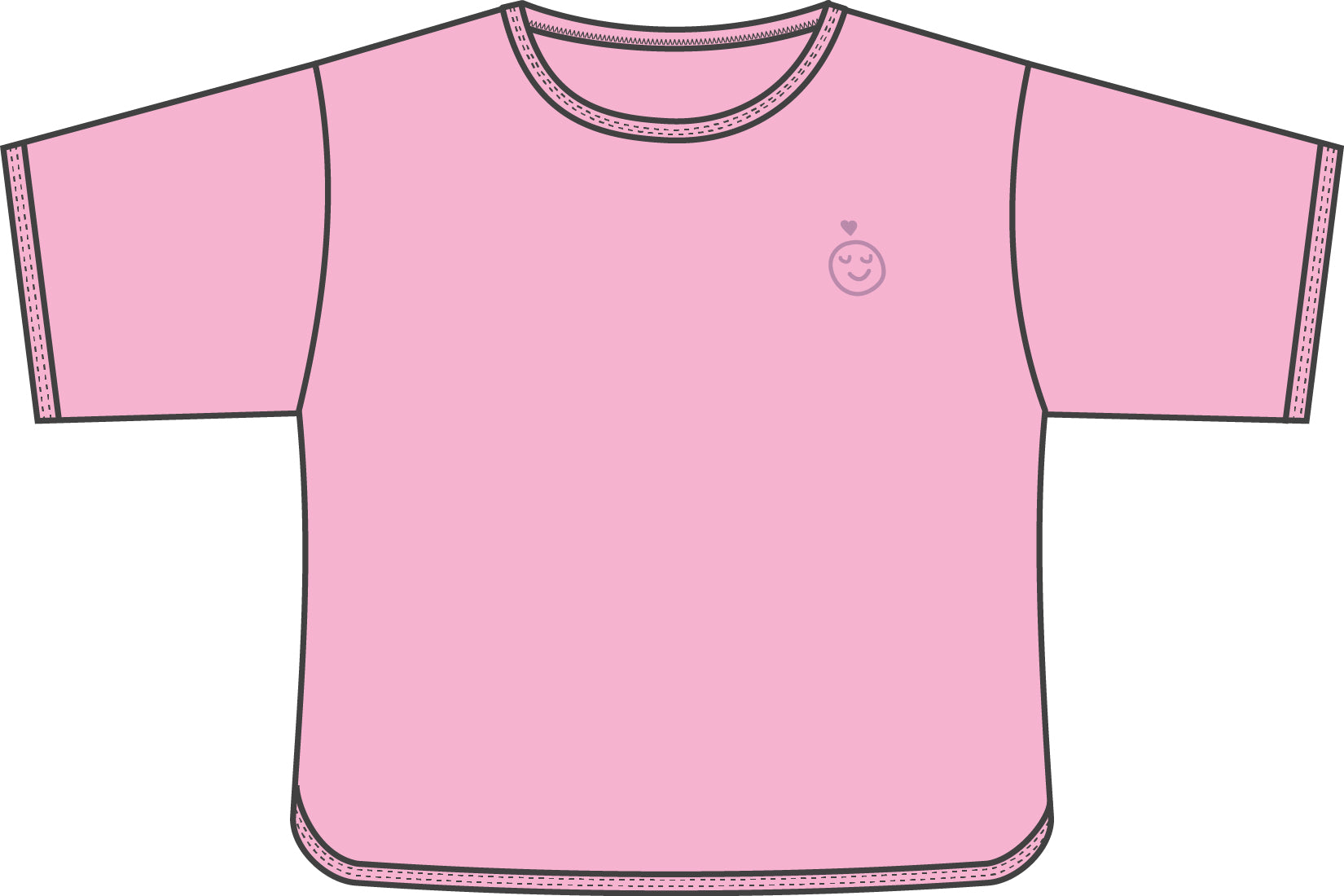 Op de voorkant staat subtiel een kleine smiley, terwijl de achterkant de aandacht trekt met een groot LOVE-opdruk in speelse letters.